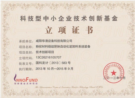 • 2014-02-13“粉狀材料燒結匣缽自動化裝卸料系統裝備”喜獲科技部中小企業技術創新基金項目立項